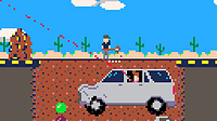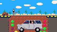 So far the player has dug a hole under the road in the desert, and Dolan has driven right into it. For the final stage of the game, the player will need to refill the hole while Dolan leans out the wi...
